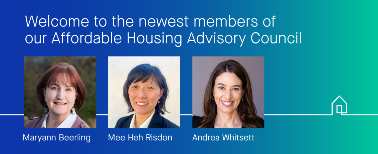 The Federal Home Loan Bank of San Francisco (FHLBank San Francisco) is pleased to announce the appointment of Maryann Beerling, Mee Heh Risdon and Andrea Whitsett to its Affordable Housing Advisory Council (Advisory Council).